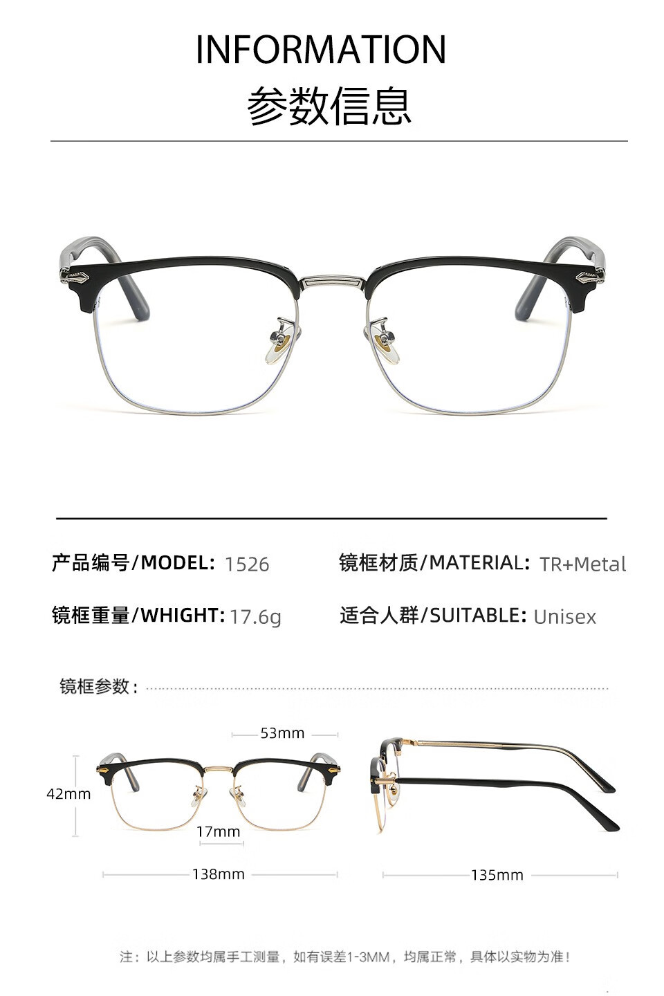 - 商品名称:商务tr90近视眼镜男款超轻眼镜框半框潮商务近视镜眼镜架黑镜框男