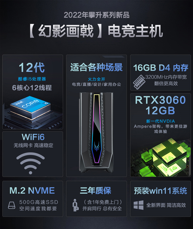 - 商品名称:攀升战神PRO12代I5台式电脑主机高配3060TI电竞游戏办公品牌台式机全套整机