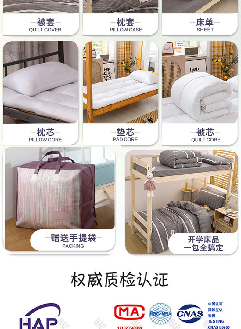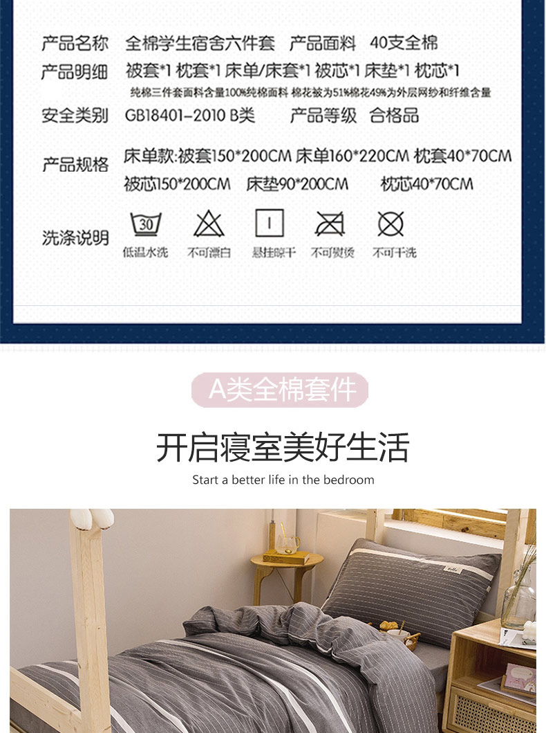 - 商品名称:学生宿舍床上用品全套纯棉三件套床笠款水洗棉床单大学床品六件套