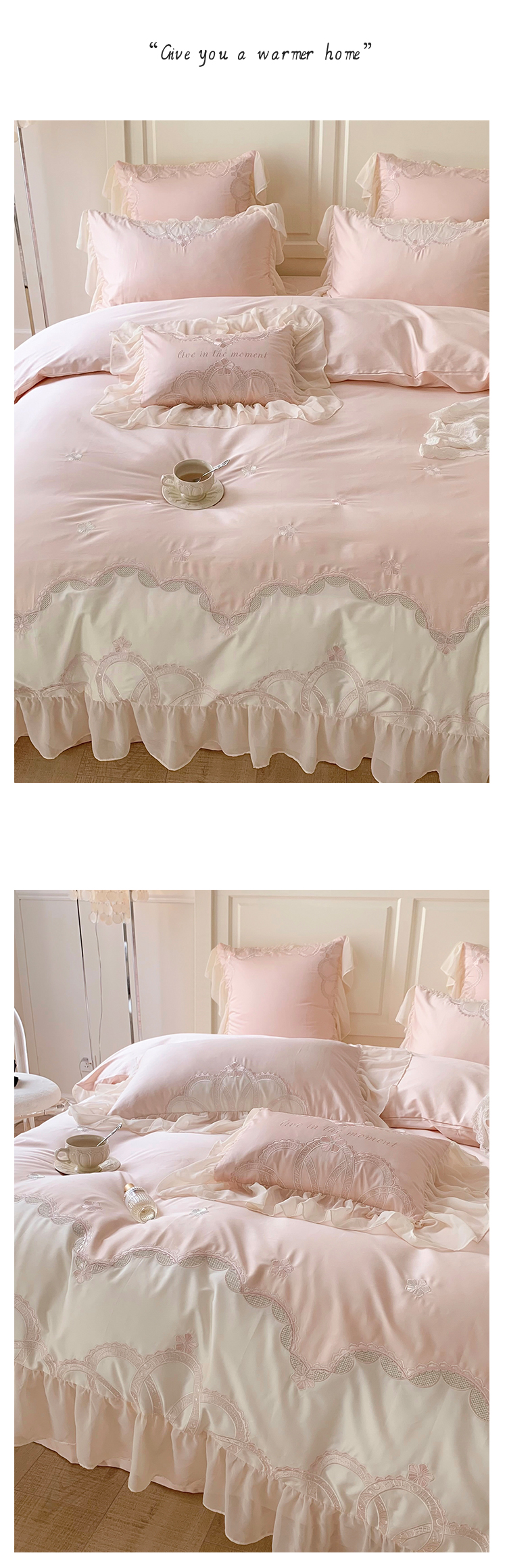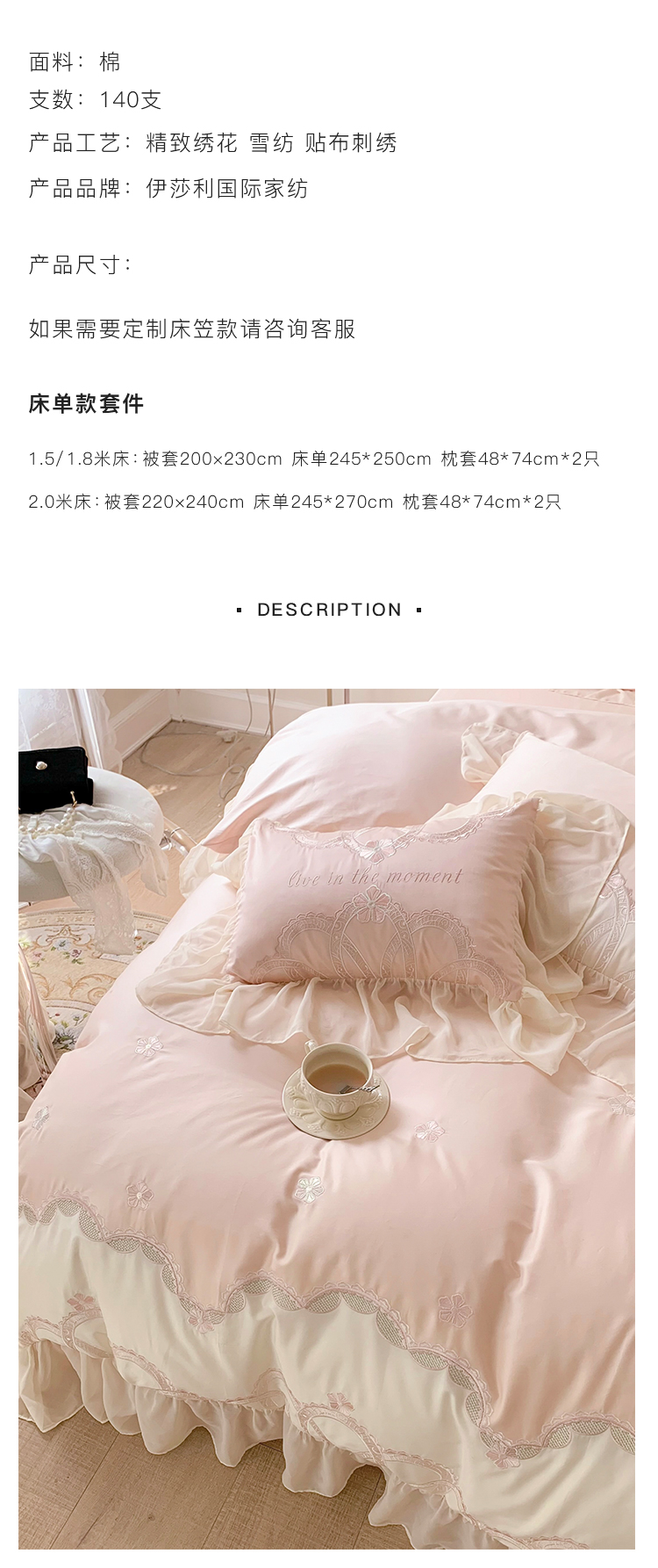 - 商品名称:法式140支长绒棉全棉四件套纯棉刺绣床单被套床上用品家纺公主风