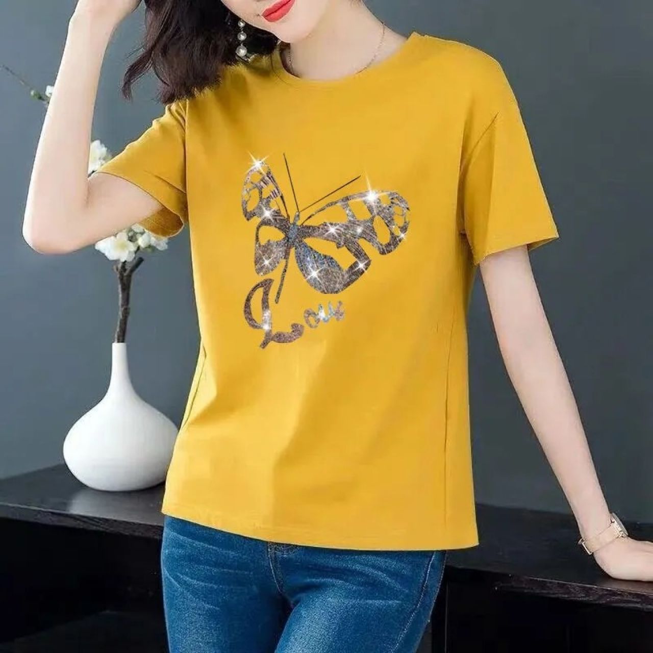 - 商品名称:纯信纯棉短袖t恤女时尚百搭2022新款春夏季休闲上衣女新品卡通印花宽松短袖t恤