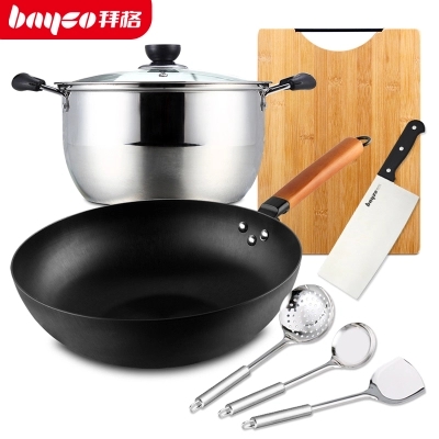- 商品名称:拜格不锈钢锅具套装铁炒锅家用汤锅全套厨房厨具组合