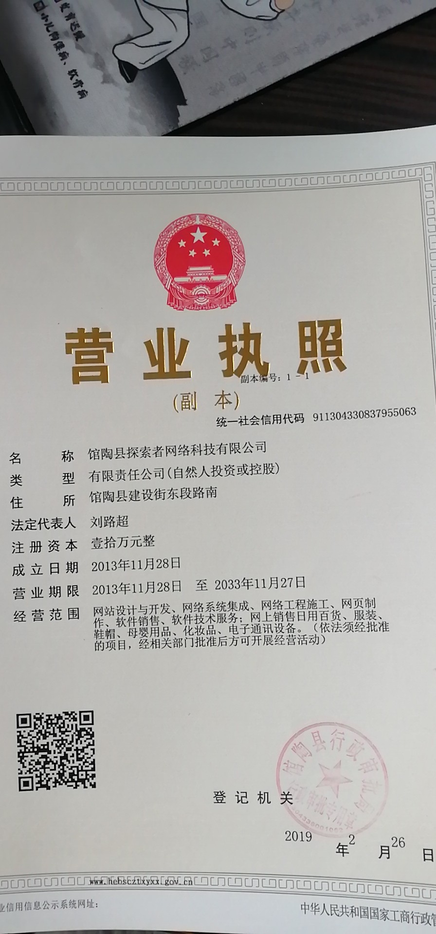 - 营业执照: